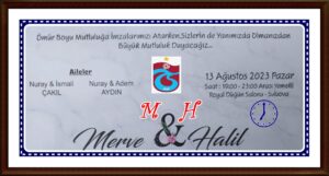Düğün : 13 Ağustos 2023 Pazar  Saat: 19.00 – 23.00 arası