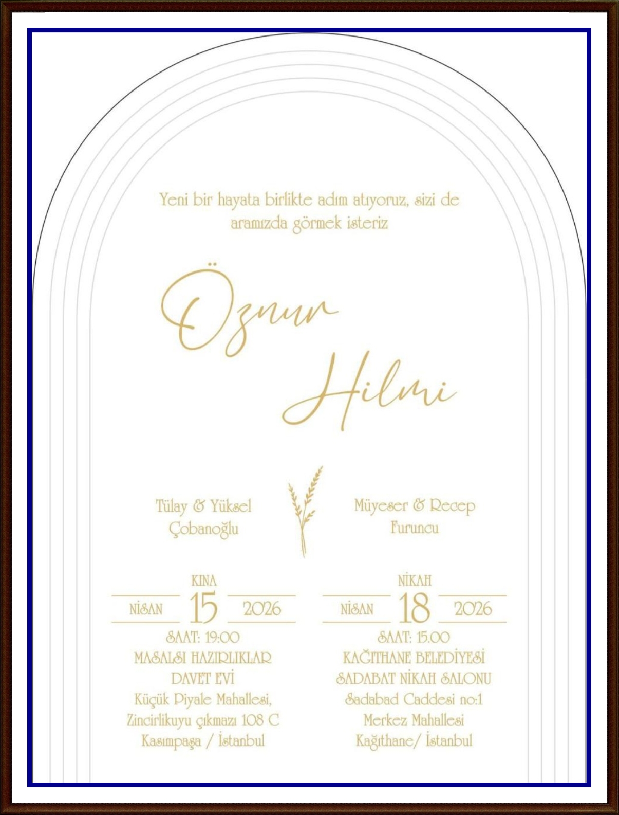 Davetlimsiniz Öznur Çobanoğlu & Hilmi Furuncu Evleniyoruz Yeni bir hayata Birlikte adım atıyoruz Sizleri... [Devamı]