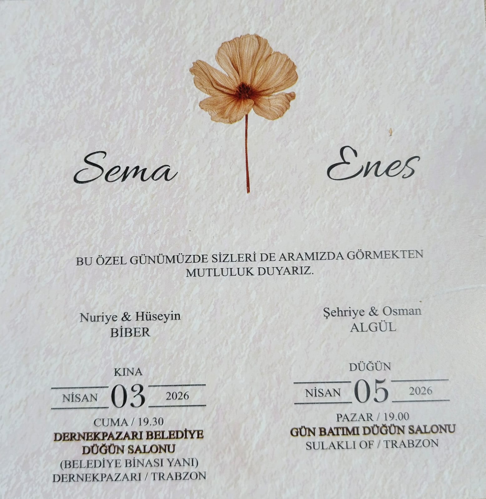 Davetlimsiniz Sema Biber & Enes Algül Evleniyoruz