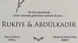 Davetlimizsiniz Rukiye Topal & Abdülkadir Biber Evleniyoruz Bu özel günümüzde sizleri aramızda görmekten mutluluk duyarız… Bismillahirrahmanirrahim Allah... [Devamı]