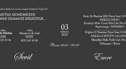 Davetlimsiniz Sevil ÇAM & Emre Yiğit Evleniyoruz. Hayatımızın en anlamlı gününde Siz sevgili dostlarımızla birlikte olmaktan Onur duyarız. Gelinin... [Devamı]
