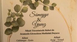 Davetlimsiniz Yüsra Kurbetoğlu – Enes Düzenli Evleniyoruz Bu mutlu beraberliğimizde Siz değerli dostlarımızı Aramızda görmekten Mutlu oluruz Gelinin... [Devamı]