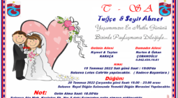 Davetlimsiniz Tuğçe Karaca & Seyit Ahmet Çobanoğlu Evleniyoruz. Suluova’da ikamet eden köylülerimizden Rahmetli Hacı Ahmet Çobanoğlu’nun Torunu Bismillahirrahmanirrahim! Allah... [Devamı]