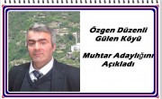 Nazım AKYOL Gülen Köyü Muhtar Adaylığını Açıkladı 31 Mart 2019 Mahalli yerel seçimlerinde. Köyümüz de sempatik kişiliğiyle Tanınan Nazım AKYOL... [Devamı]