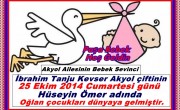 İbrahim Tanju Kevser Akyol Çiftinin Bebek Sevinci Çanakkale Onsekiz Mart Üniversitesi Araştırma Görevlisi İbrahim Tanju Kevser Akyol çiftinin 25 Ekim 2014... [Devamı]